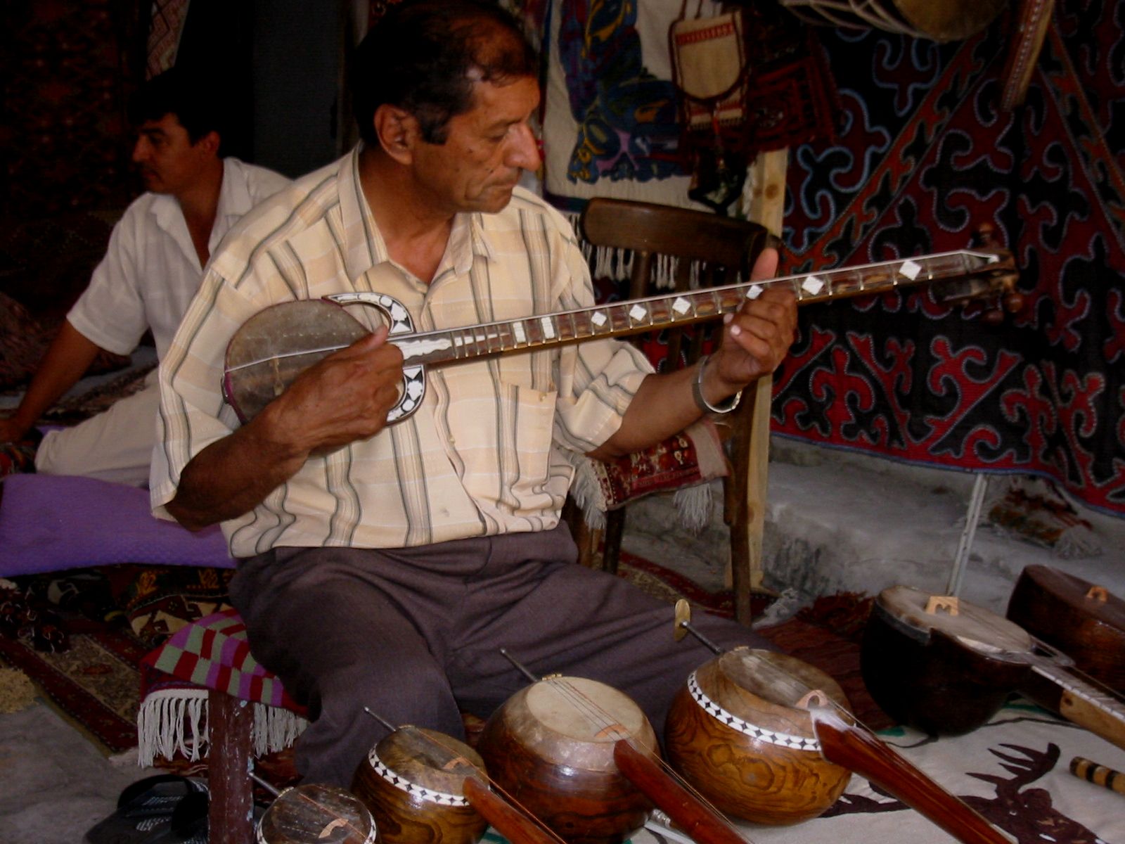 Sogdien, Hersteller und Verkäufer von Musikinstrumenten, Samanidenmausoleum aus dem 10. Jahrhundert mit einmaliger Dekoration,einheimische Frau,Chor Minor Medrese, singende und tanzende Frau,, Juma Moschee mit 234 holzgeschnitzten Säulen in Chiwa,Amudarja