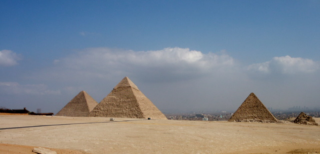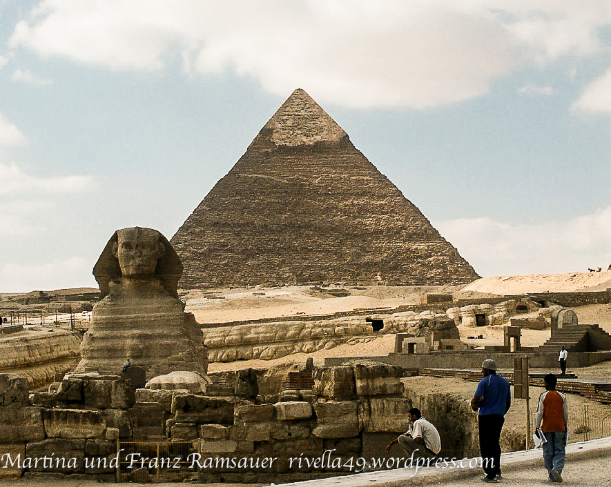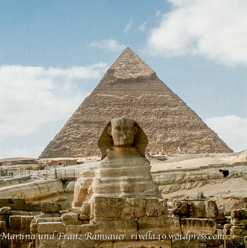 Die Ebene von Gizeh befindet sich in unmittelbarer Nähe von Kairo und nicht in der Wüste. Wir spürten die Stadt gleich hinter unseren Rücken.Aber als die Pyramiden vor über 4’000 Jahren gebaut wurden, war der Ort ideal für die Errichtung von Bauwerken, weil er auch westlich des Nils ist, sozusagen am Ort des Sonnenunterganges. Er erfüllte alle notwendigen religiösen Bedingungen für eine Nekropole.