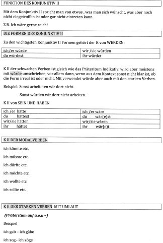 Arbeitsblatt:IRREALE WÜNSCHE WERDEN MIT DEM KONJUNKTIV II GEMACHT