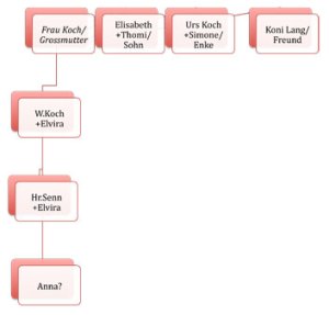 Die obige Graphik zeigt die Figurenkonstellation am Anfang dieses Buches, welches ich hier kurz skizzieren möchte.