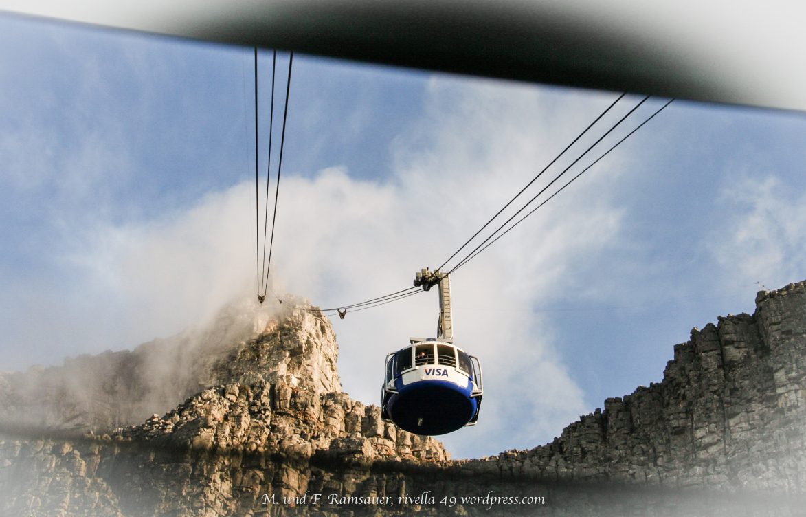 Hier oben seht ihr die Seilbahn, die zum Tafelberg führt.