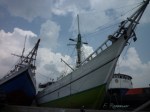 a) Der Sauersack | b) Der Hafen in Jakarta | c)