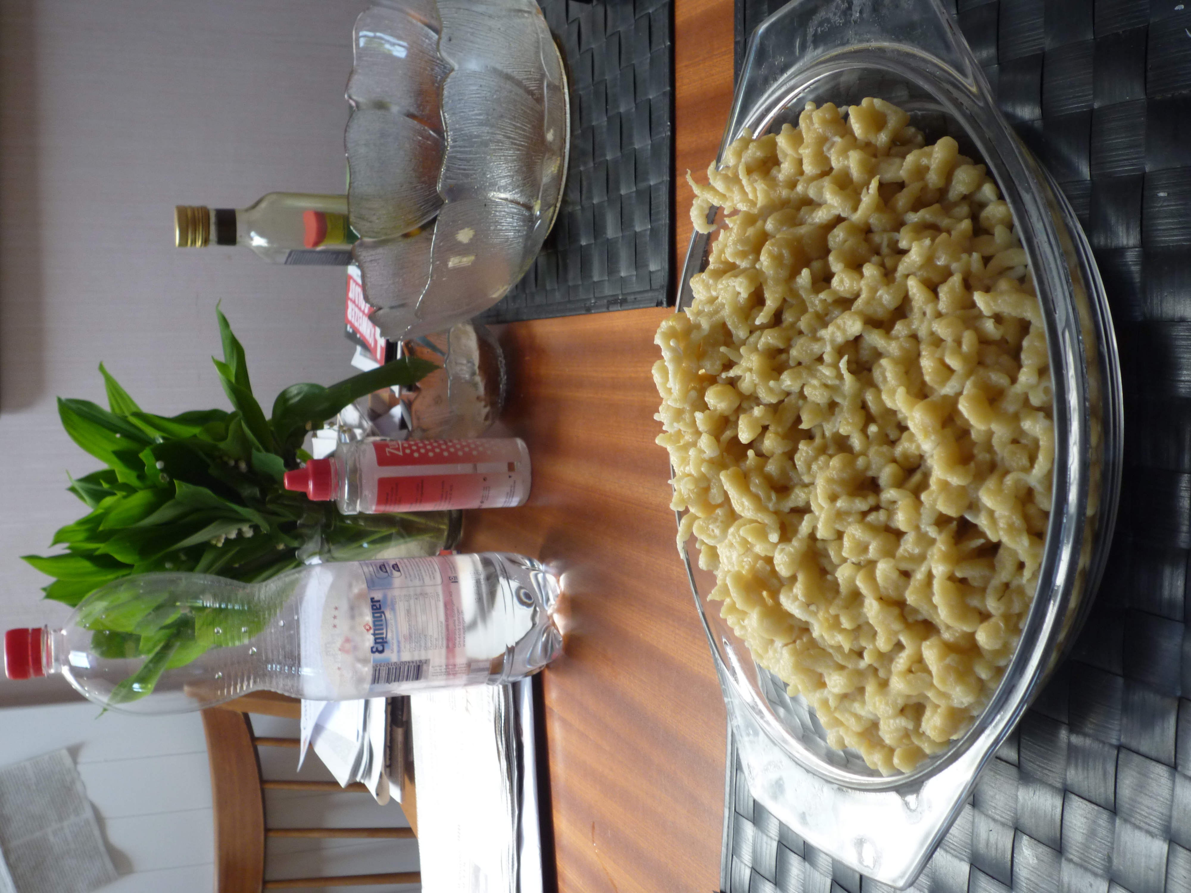 habe ich heute frische Knöpfli /Spätzli mit Milch gemacht. Mein Rezept setzt sich wie folgt zusammen: