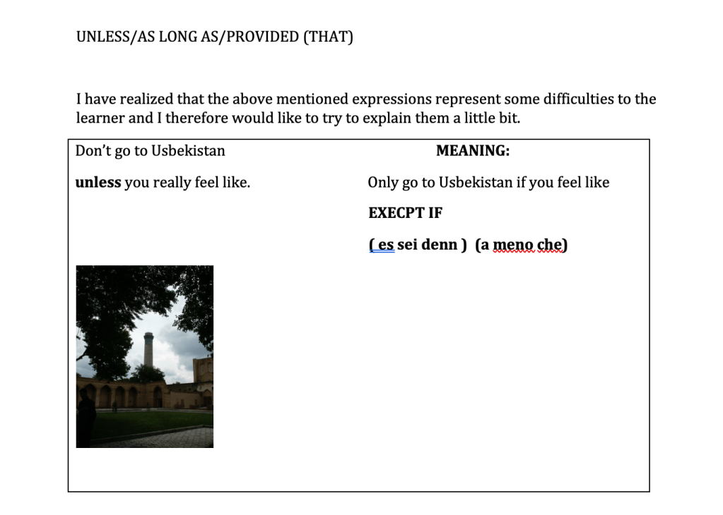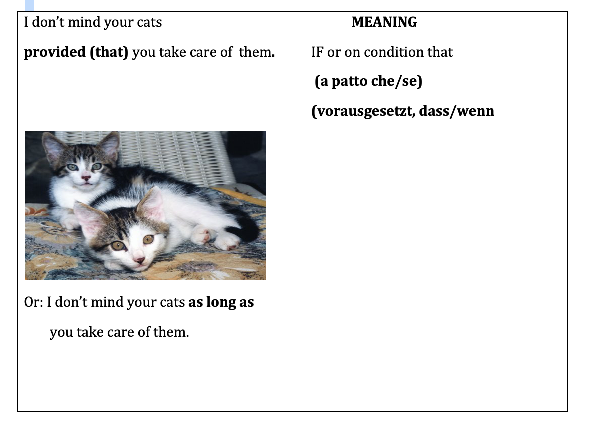 them a little bit. In the two windows you see further down (or here AS LONG AS) I give you the explanation of how to use unless and how to use provided/as long as.