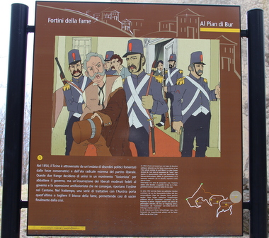 Sopra il villaggio di Camorino ci sono 5 torri cilindrici, i così detti Fortini della fame, che ricordano la storia movimentata dell’ ottocento,le  sue miserie, la guerra oppure l’emigrazione  di quel periodo. Il Ticino era circondato da monarchie che avevano dei conflitti fra di loro  e il Cantone diventava quindi un’ attrazione per rifugiati e cospiratori  e per questo i signori del Lombardo-Veneto erano poco entusiasti. Gli austriaci accusavano il Ticino di pubblicare materiale anti austriaco. Nel 1848 l’Austria decretò il blocco commerciale e arrivò a minacciare un’azione  militare.