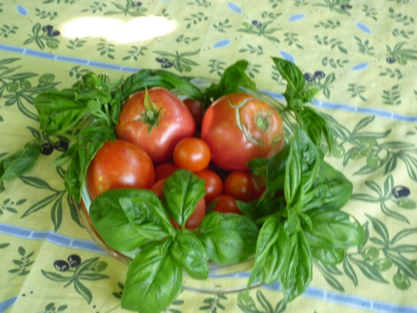 -ratatouille (cut tomatoes, aubergines, zucchini and peppers in cubes and garlic and onions fine and steam everything slowly in olive oil).