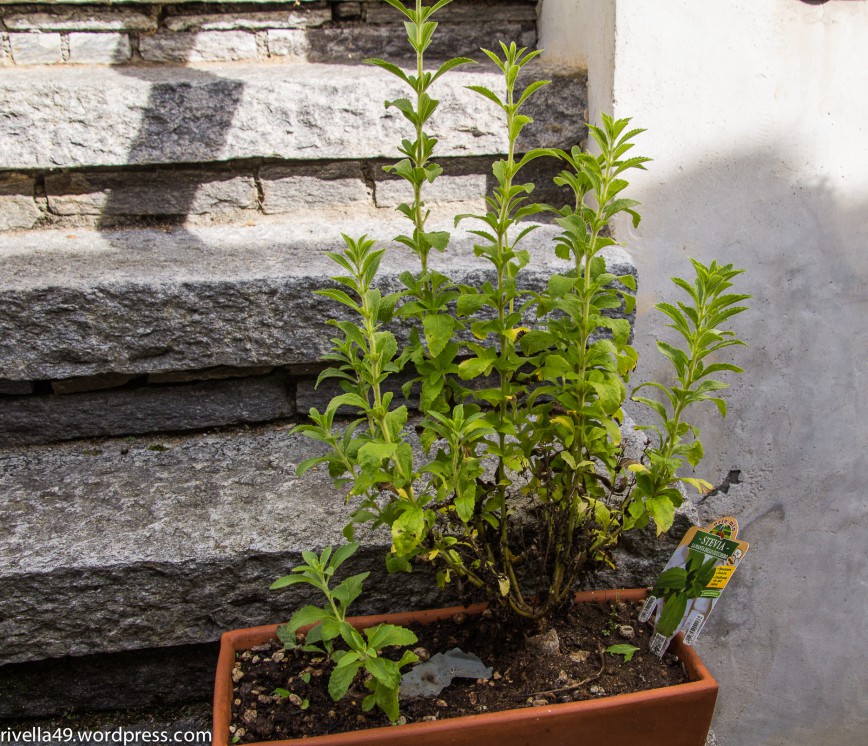 Vor dem gesagtem Turm steht ein Gefäss, in der die berühmte Pflanze, STEVIA REBAUDIANA, mit ihren grünen Blättern wächst. Wir haben die Blätter kosten dürfen und deren natürliche Süsse getestet! Es war Mosè Giacomo Bertoni, der sie als erster beschrieben und katalogisiert hat.Der natürliche Süssstoff ist übrigens ca. 300 mal süsser als Zucker!!