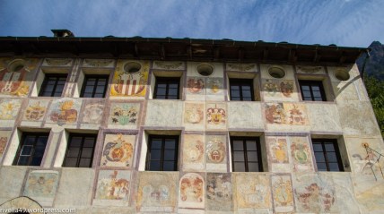 Facciata del museo con stemmi/https://rivella49.wordpress.com/2014/10/10/steviasurvival-stragies-valle-di-blenioticinoied/