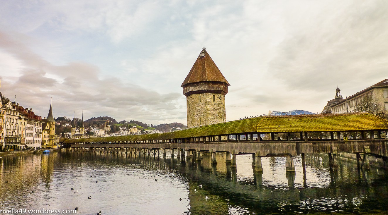 Kapellbrücke und Wasserturm, der ca.um ca.1300 erbaut wurde. The Chapelbridge and the Water Tower, which is even older or was built around 1300. Il Ponte della Cappella e la Torre dell’ Acqua che è persino più vecchia del ponte e venne costruita intorno a 1300.