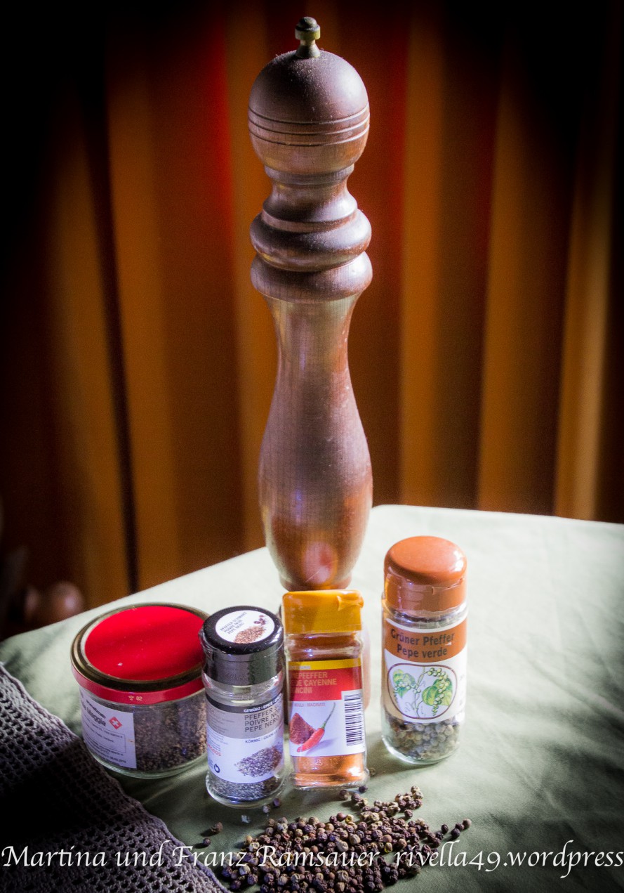 We always have a freshly pressed orange juice for breakfast, what is already quite a good start! Some time ago, however, I was advised to add some fresh, ground black pepper to it. I have to admit that this flavour is just great! Pepper helps to digest, in case of cramps and against rheumatic pain. It seems that if also has an aphrodisiac stimulation and it is one of the most efficient insect poisons. Last but not least it also helps against colds.
