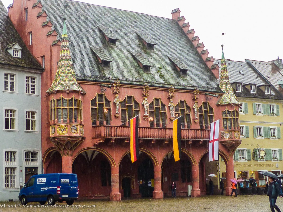 Later we went, for a first walk to the old town, despite the rain and admired the many gorgeous old houses, among them the Old and the New Town House, which are connected. The old section was destroyed during the second world war.
