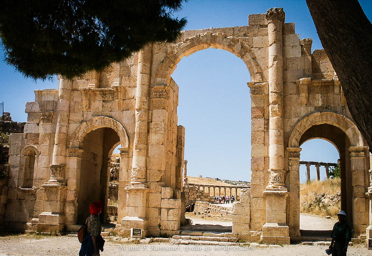 Und ich hatte eine kleine Schildkröte. Während des Passover Festes 1947, ungefähr sechs Monate vor dem Ausbruch des Krieges, begleitete Vater einige Leute der Hebräischen Universität auf einem Ausflug nach Gerasa, in Trans-Jordanien. Er startete früh morgens mit einer Tasche belegter Brote und einer Wasserflache der Armee, die er stolz in seinem Gürtel trug. Er kam am Abend zurück und erzählte seine schönen Geschichten des Tages und über das wunderschöne, grosse römische Theater und er brachte mir die kleine Schildkröte als Geschenk, die er am Fusse des erstaunliches römischen Steinbogens fand. (Seite 358)